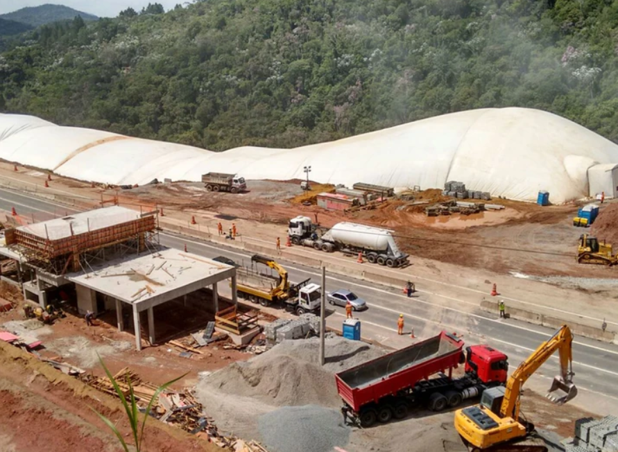 DamCovering is the ideal solution for large-scale mining operations, offering unparalleled protection from environmental elements. Designed to withstand harsh conditions, it effectively shields your site from rain and wind, significantly reducing downtime during rainy days.